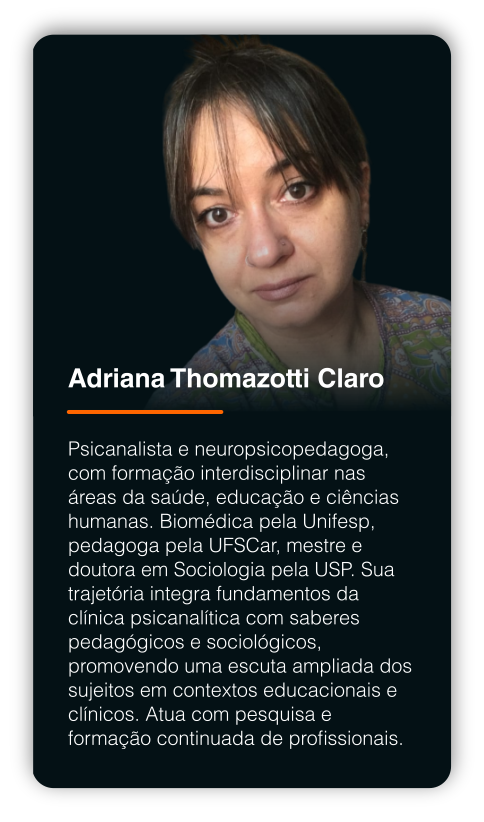 Atua com excelência na criação de cursos, seminários e programas de formação, articulando teoria, prática e cultura, oferecendo uma experiência de ensino comprometida com a escuta, o rigor conceitual e a construção coletiva do saber.